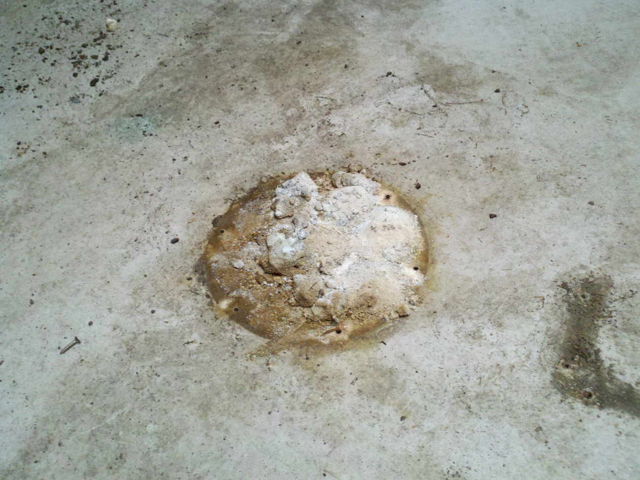 This is under the leaning post foot, no caulking on any screw hole. |
