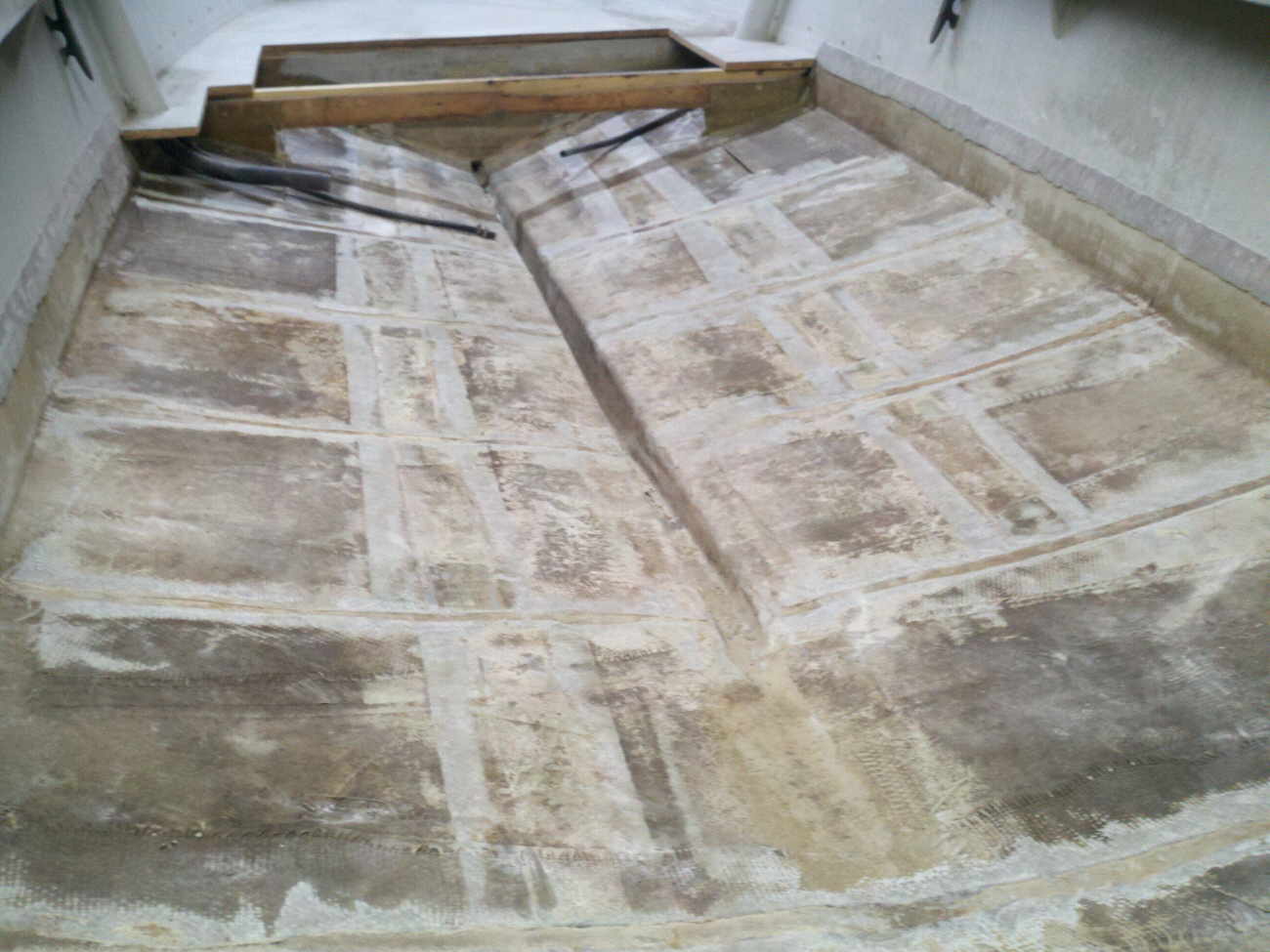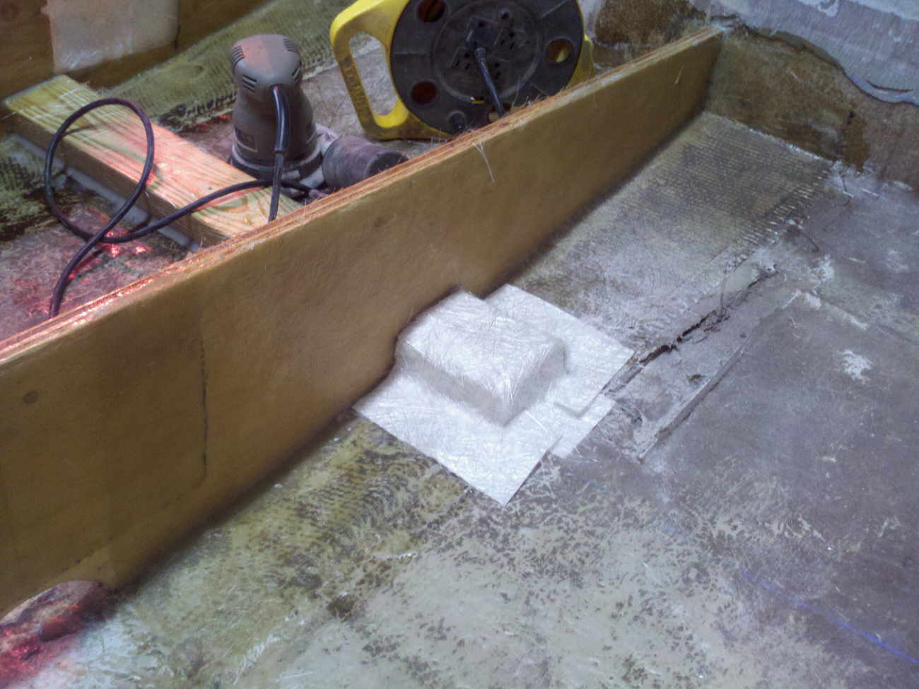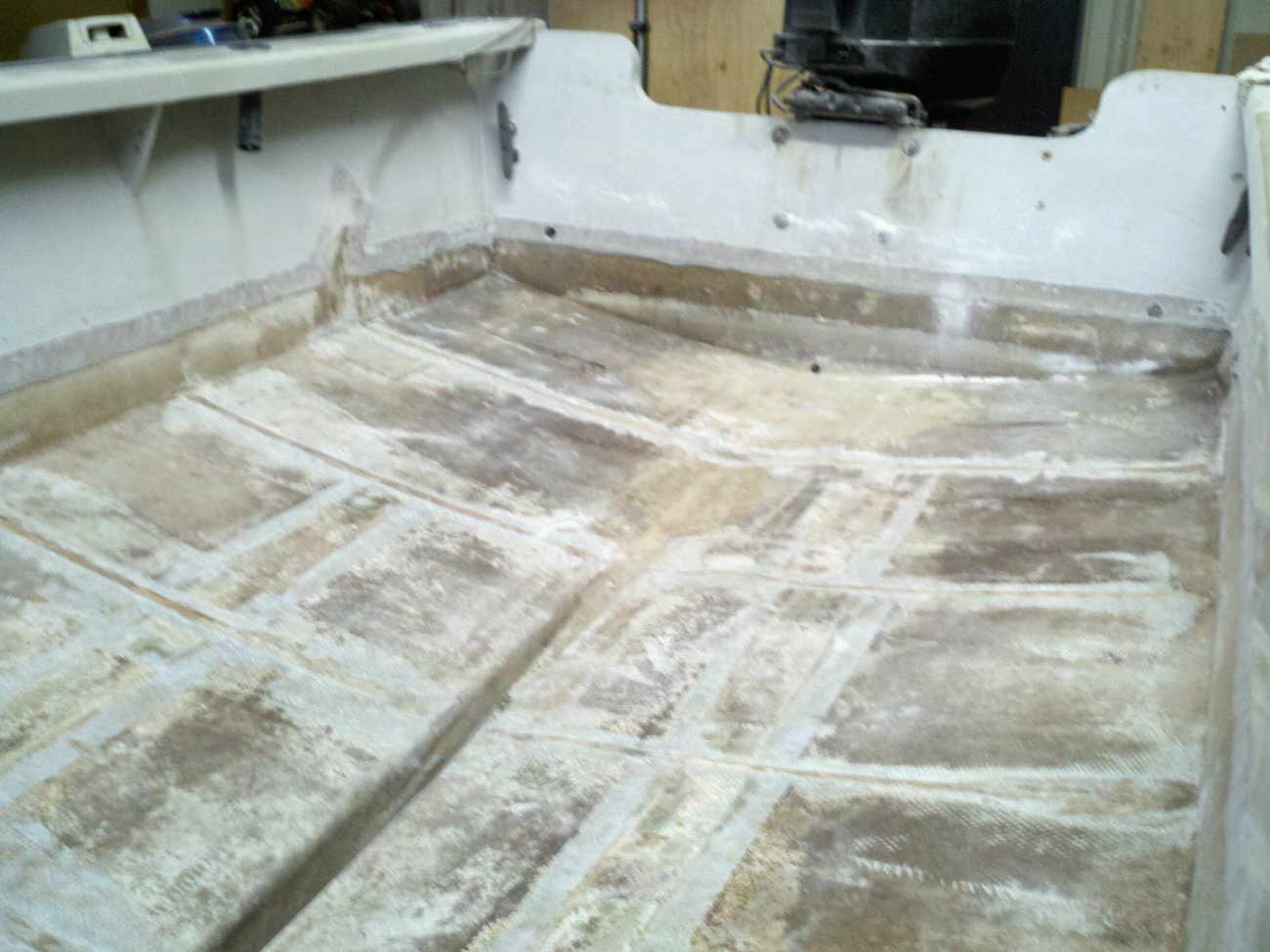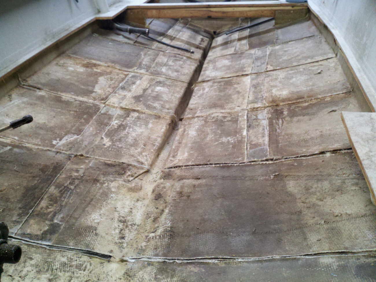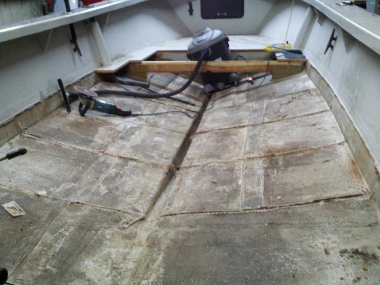 floor. Upon cutting into the floor it very quickly turned into much more. This boat was made very cheaply and hacked together with scraps and inferior NON