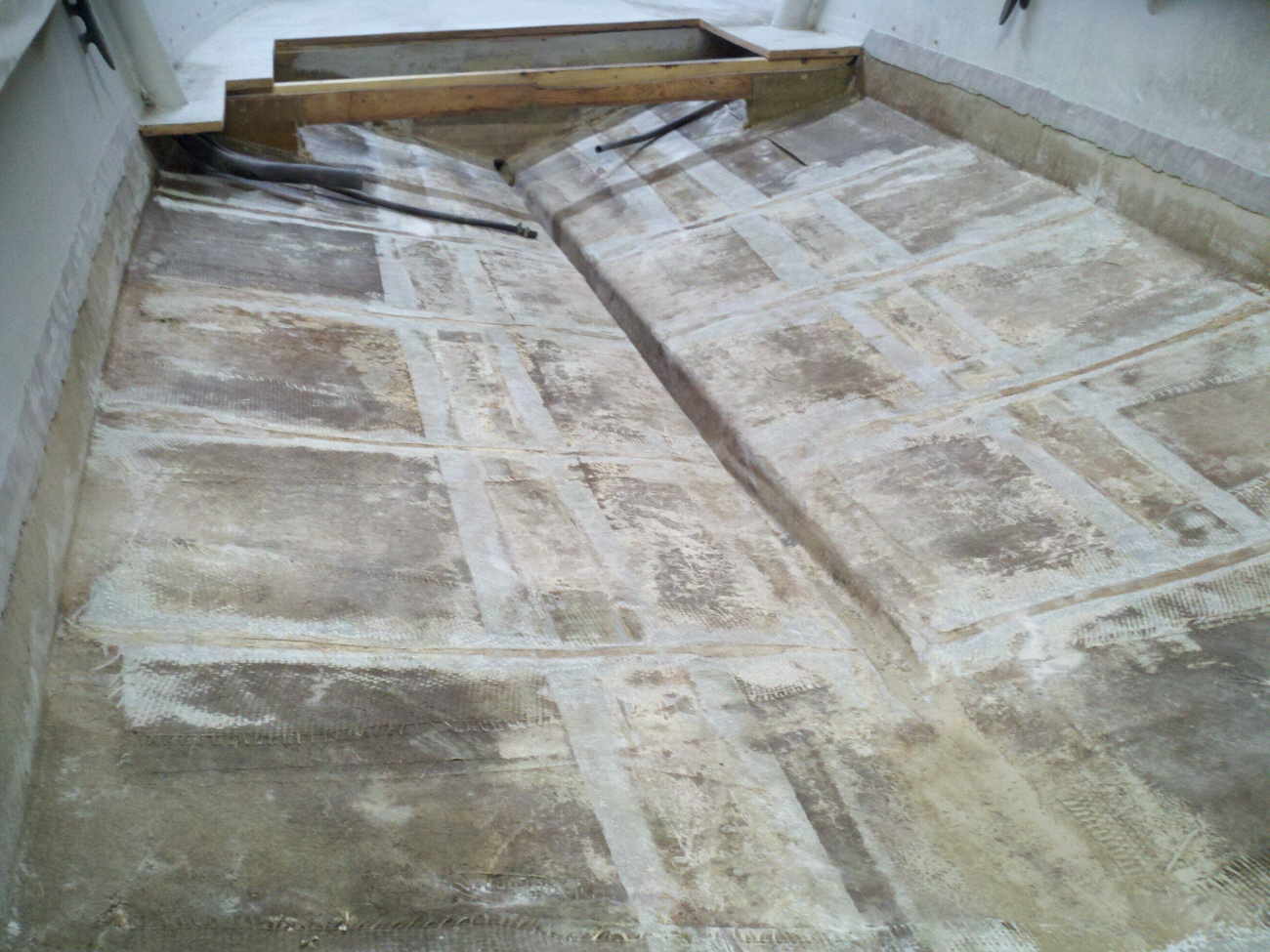 Mounting plate for the bilge pump glassed in. |