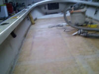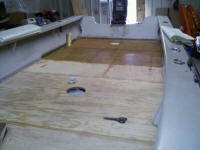 The Eastern rebuild was going to be a simple fix, replace the internal leaking, under floor mounted, gas tank and fix a small spongy spot in the floor. Upon cutting into the floor it very quickly turned into much more. This boat was made very cheaply and hacked together with scraps and inferior NON marine products by the factory, no marine lumber here, cdx plywood and pine untreated framing 2x4's. From scrap wood, pine framing lumber, car mats, nails and poor construction, along with the lack of a bilge pump and drain plug turned everything into major rot factory. The boat is a 22' Eastern, 1988 vintage, and there was only 1 owner before Tunuts (a family member) and is 100% original. No modification, changes or additions have ever been made to the boat from the day it left the factory, heck not even a dang cup holder, in fact the motor that came with the boat when new, a 115 Merc of the same vintage, had the original spark plugs and has no more the 200 hours total.